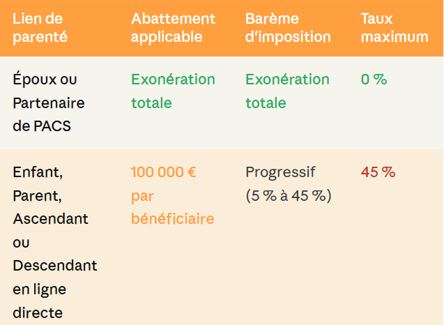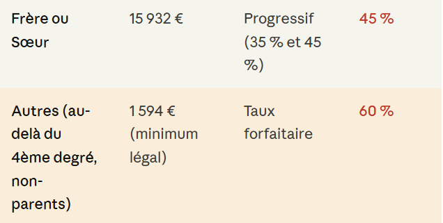 Les droits de succession/héritage.